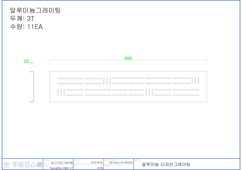 [알루미늄그레이팅] 페이지 정보 작성자 영원인스톨 댓글 0건 조회Hit 3,781회 작성일Date 19-08-05 14:57 본문 지안건설 / 2019 목록 답변 이전글[스틸그레이팅] 19.08.06 다음글[화관법-트렌치] 19.08.05 댓글목록 댓글목록 등록된 댓글이 없습니다.